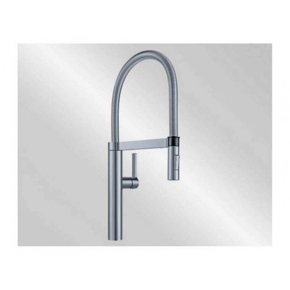 BLANCO CULINA-S поверхность "нержавеющая сталь"смеситель ,Кухонный смеситель CULINA-S впечатляет изысканностью и необычностью дизайна. Он прекрасно сочетается с современными мойками из нержавеющей стали, позволяя обеспечить максимальную функциональность рабочей зоны на кухне. Пружина из нержавеющей стали и возможность вращения на 360° обеспечивают изливу полную свободу движения. Шланг удобно фиксируется с помощью магнитного держателя. Излив работает в двух режимах: струя и душ. Запатентованный рассекатель позволяет уменьшить образование налета от воды.• Ширина: 4.5 см • Высота: 54.5 см • Высота излива: 183 мм • Длина излива: 220 мм • Длина рукоятки: 75 мм