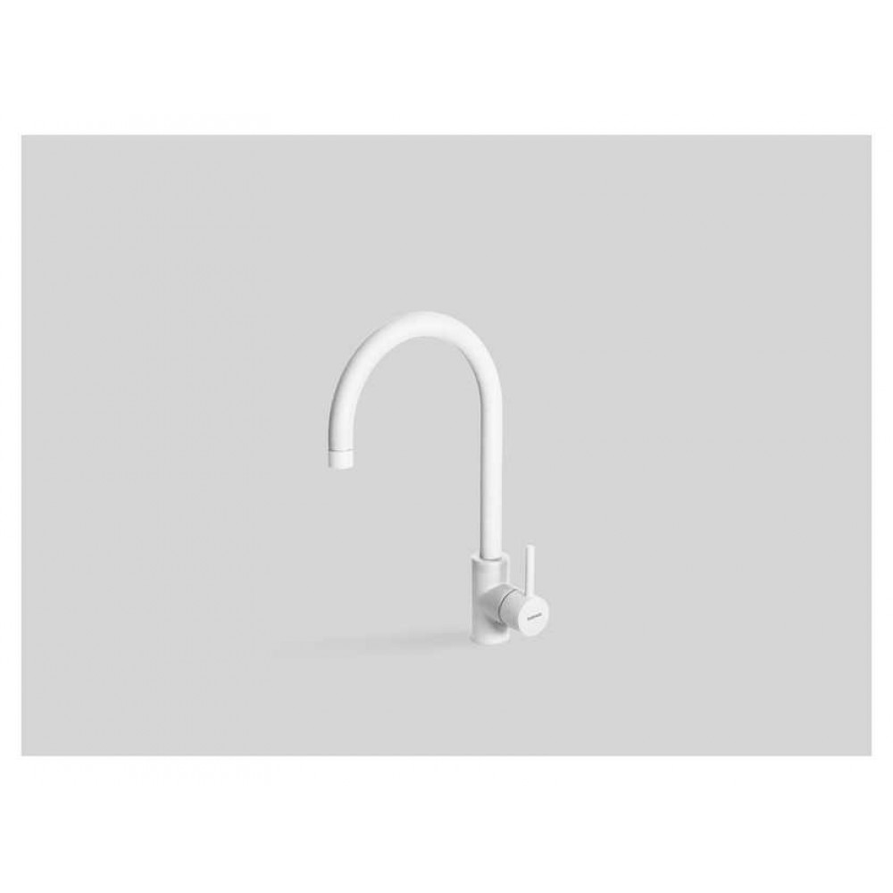 Описание Однорычажный смеситель для мойки с поворотным изливом. Диаметр выреза 35 мм Цвет белый