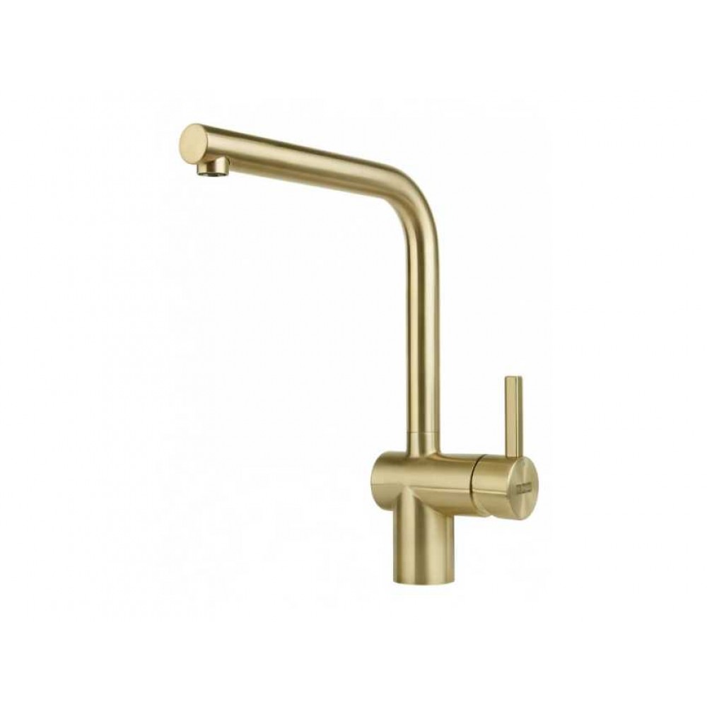 Описание Тип Без выдвижного шланга Материал Нержавеющая сталь с PVD-покрытием, цвет: золото Угол поворота 180° Управление Однорычажный Отверстие для установки ø 3.5 см Класс шумности 1 класс Высота:297 мм Длина излива:225 мм Высота излива:269 мм