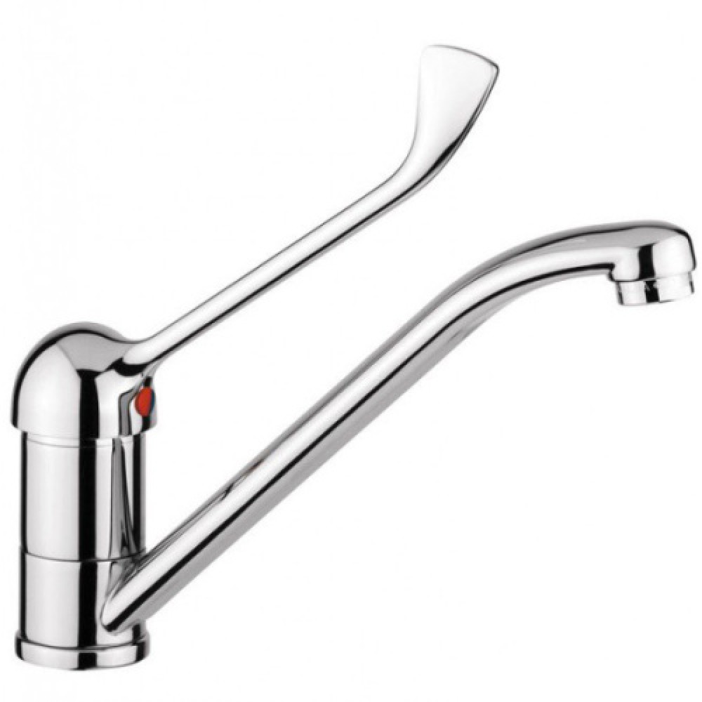 Смеситель для кухни Emmevi Giglio 8007LC – это функциональное и внешне привлекательное оборудование, без которого невозможно представить современную кухню. Конструкция устанавливается на бортик раковины под одно отверстие. Управлять механизмом смесителя удобно длинной металлической ручкой. Изделие производится из металла в цвете хром. Высота 24 см.