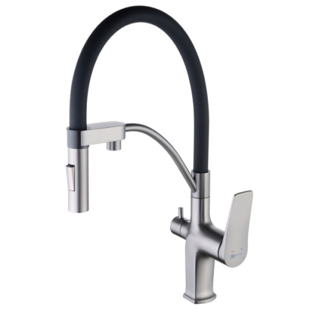 Смеситель для питьевой воды Lemark Bronx с гибким изливом графит LM3761GM Hanex