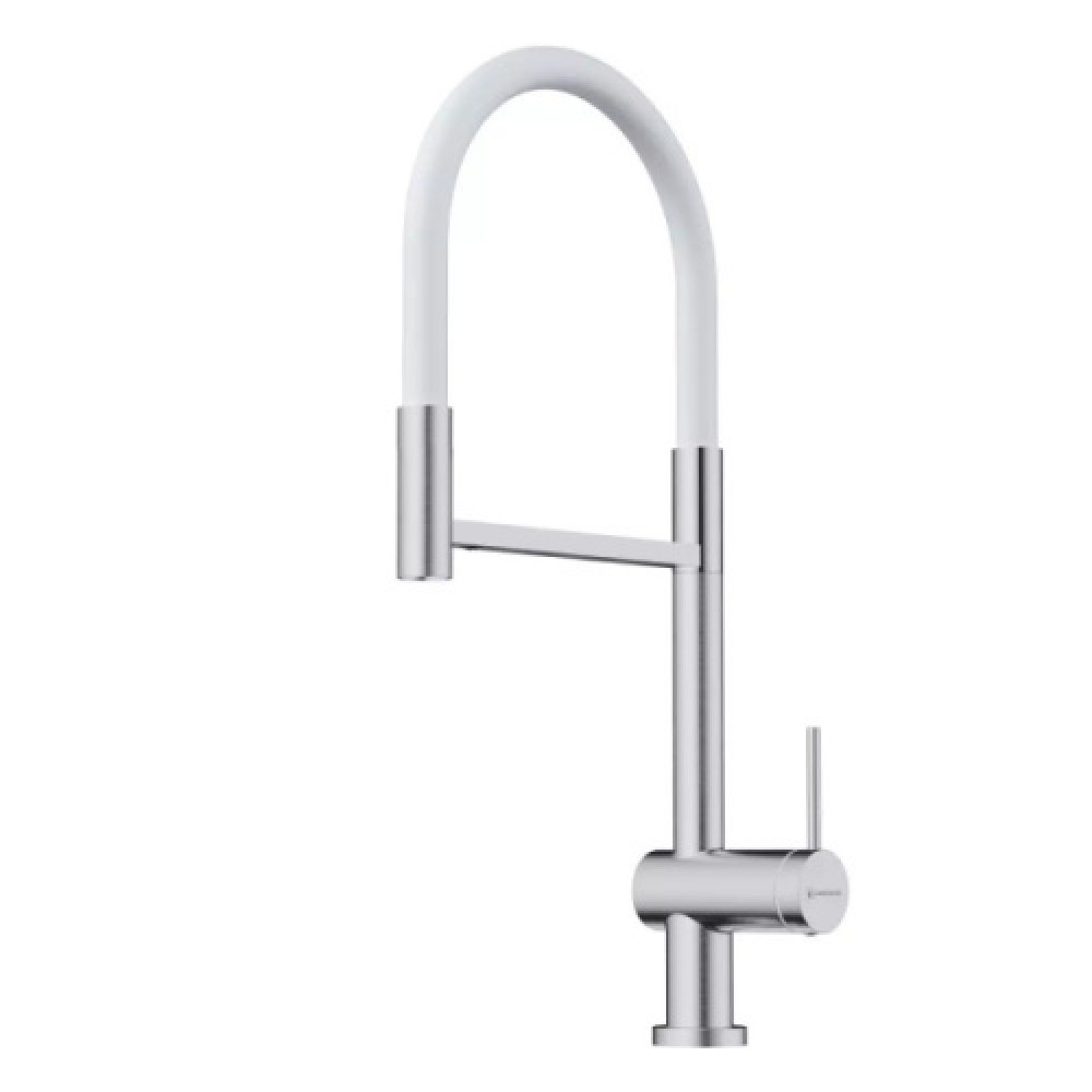 Смеситель Omoikiri Kanto 2 Plus-SB BN 4994450 в цвете белый/нержавеющая сталь сочетает стиль и функциональность. Совмещённый излив (24,6×22 см) с поворотом на 360° обеспечивает удобство в использовании. Питьевая и водопроводная вода подаются через один рычаг, а пластиковый аэратор гарантирует мягкий поток. Матовая поверхность, гибкая подводка в оплётке из нержавеющей стали и надёжный керамический картридж обеспечивают долговечность.
