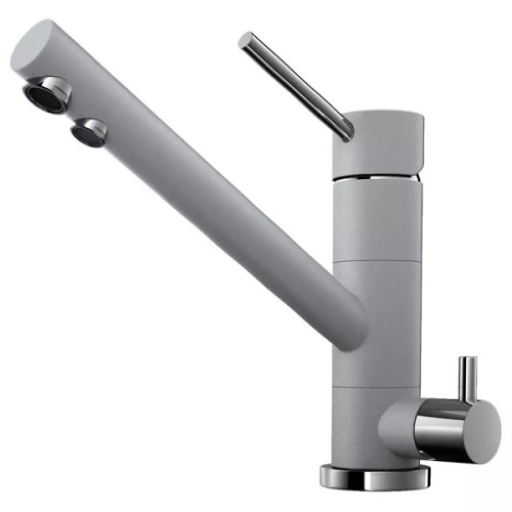 Смеситель для питьевой воды Omoikiri Tonami GR 4994223 в цвете leningrad grey имеет излив высотой 15,6 см и длиной 20,8 см с углом поворота 360°. Керамический картридж 35 мм и пластиковый аэратор обеспечивают надежность и долговечность. Подача питьевой воды осуществляется через отдельный излив с рычагом управления. Гибкая подводка с оплеткой из нержавеющей стали. Матовая и глянцевая поверхность подчеркивает стиль. Для бытового использования.